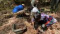 フィールドワークの授業の一貫として静岡大学の大学生にお越しいただきました。あいにくの雨となり、予定していたタケノコ掘りと竹林整備の実習は中止とし、里山内をネイチャーガイドとともに歩くガイドウォークを実施しました。雨の日の里山もいつもと違った視点が得られてなかなか風情のあるものです。