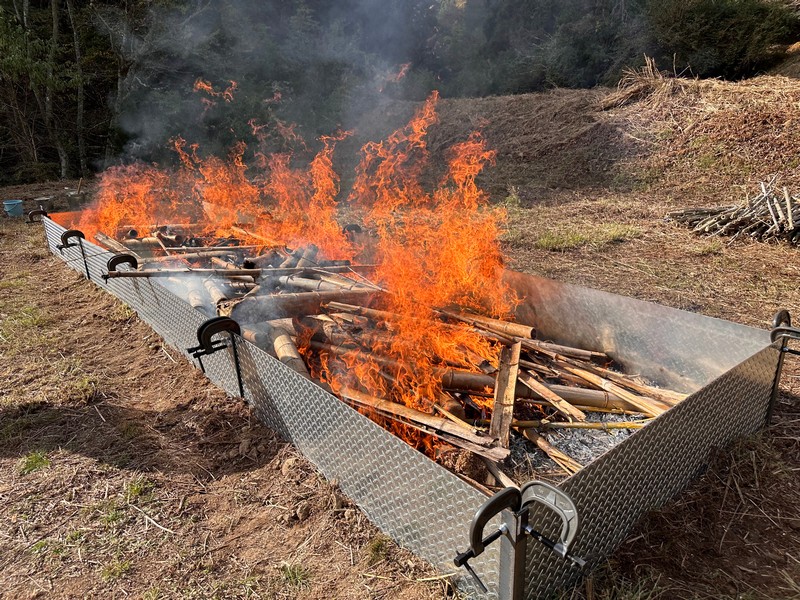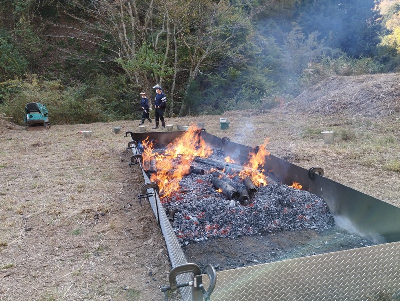 今回は1立米の竹炭が焼き上がりました。用意した竹材があっという間になくなってしまったので、次回はもっとたくさん用意して、炉いっぱいに焼きたいと思います。