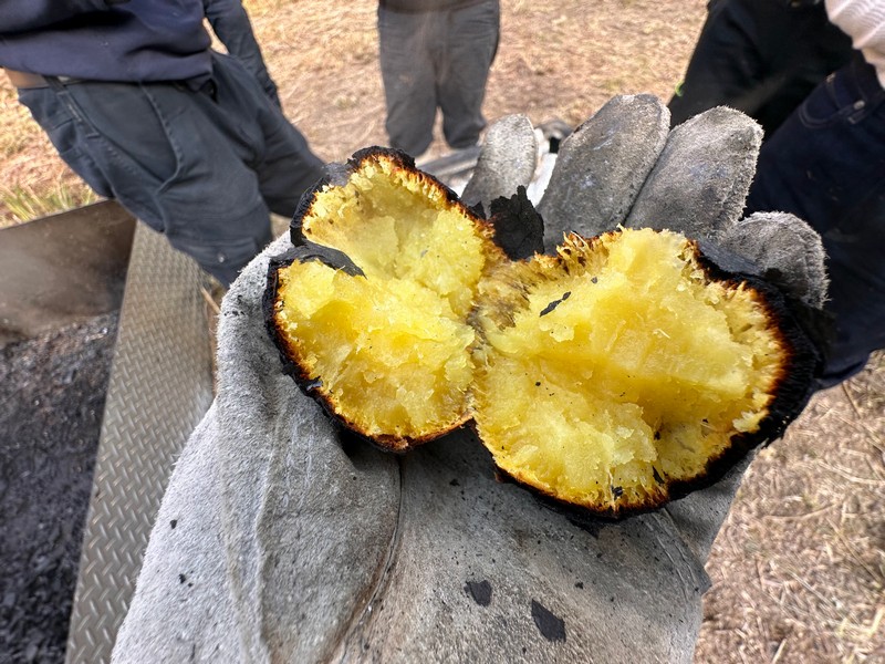 最後は、同時に焼いていた焼き芋をみんなで。一汗かいたあとの焼き芋の味は格別でした。